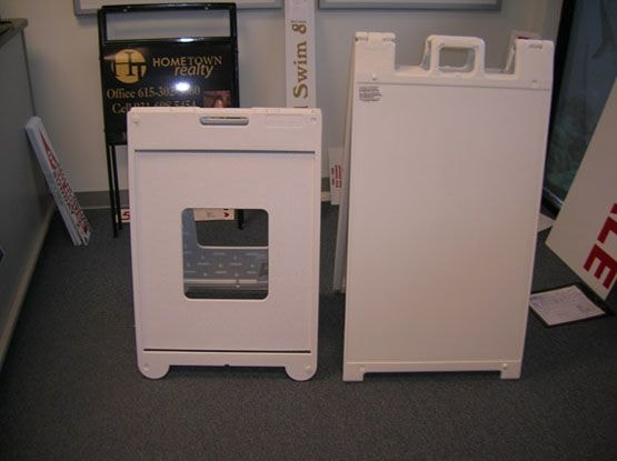 Also called sidewalk signs, sandwich board signs, or easel signs, these signs are defined by their triangular shape. Both sides of the sign can easily be customized with changing messages and your company’s branding.
