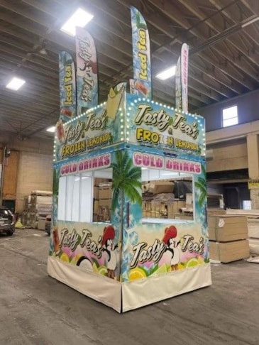 Work “double duty” as a platform or podium for greeters, demonstrations or featured speakers