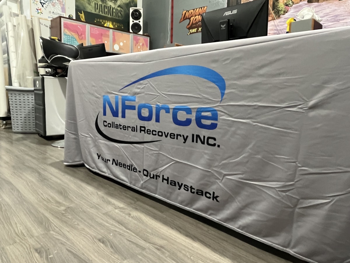 Image360 Calgary South can show you company tablecloth options for all budgets. You’ll choose from printed tablecloths in four-, six- and eight-foot sizes as well as custom lengths. Our tablecloths with logos are constructed of long-wearing fabric that’s machine washable and readily transportable from event to event. Custom table runners are yet another attractive choice, while tablecloth banners and table skirts can provide a perfect finishing touch!