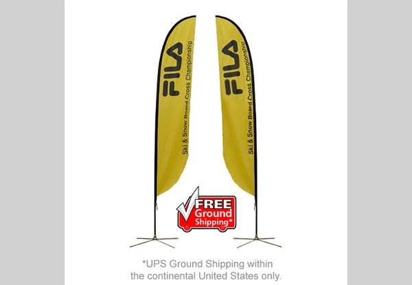There are indoor applications for these flags as well. Consider incorporating feather flags into your trade show or convention booth display – they can just as easily capture attention on a show floor as they can outside. Don’t forget to include a base with your flag when you order indoor flags. This will ensure that it stays sturdy while on display.