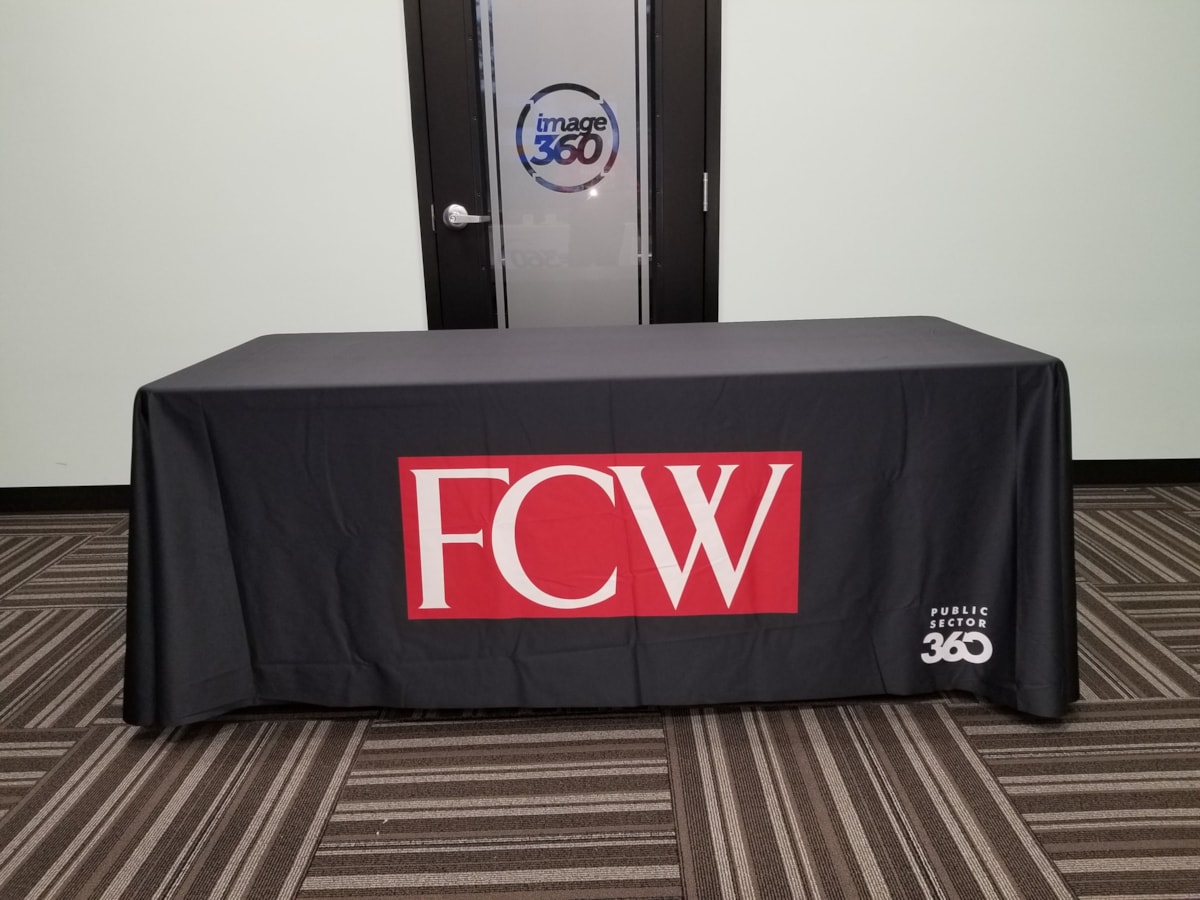 Image360 Dulles can show you company tablecloth options for all budgets. You’ll choose from printed tablecloths in four-, six- and eight-foot sizes as well as custom lengths. Our tablecloths with logos are constructed of long-wearing fabric that’s machine washable and readily transportable from event to event. Custom table runners are yet another attractive choice, while tablecloth banners and table skirts can provide a perfect finishing touch!