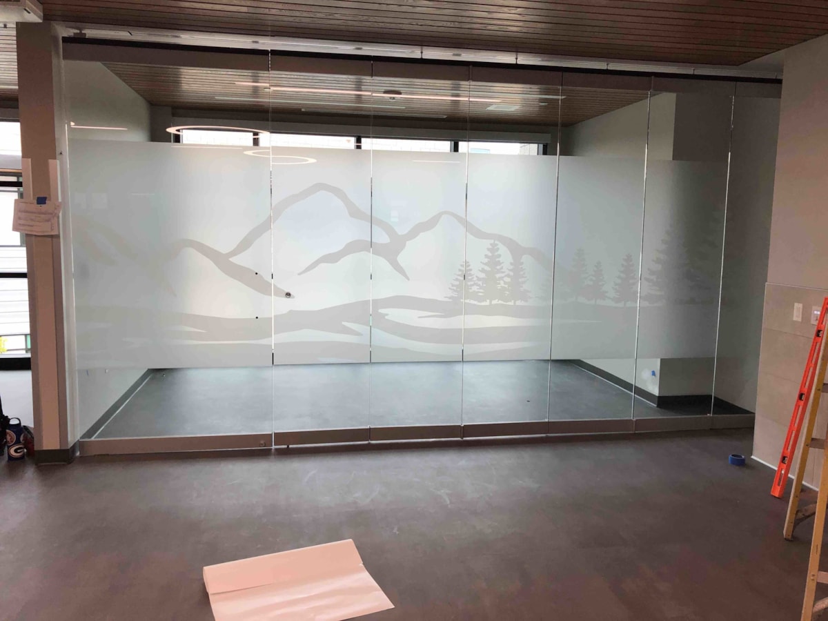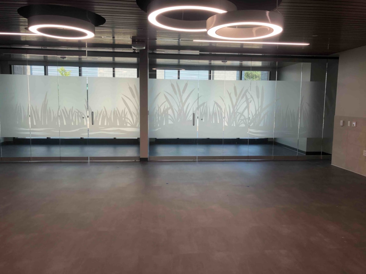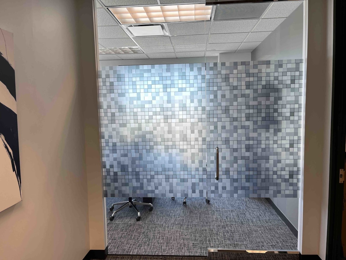 Though exterior-facing windows are a common application for our vinyl window graphics, we have plenty of options that are ideal for indoor use on any glass surface – whether it’s a door, window or wall. If you have conference rooms or offices with interior windows or glass doors, consider frosted glass to create a classy, private space. Download our window graphics guide.