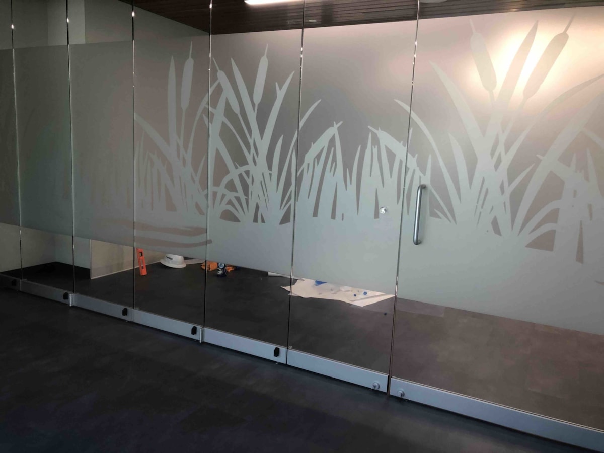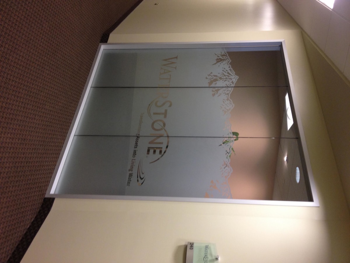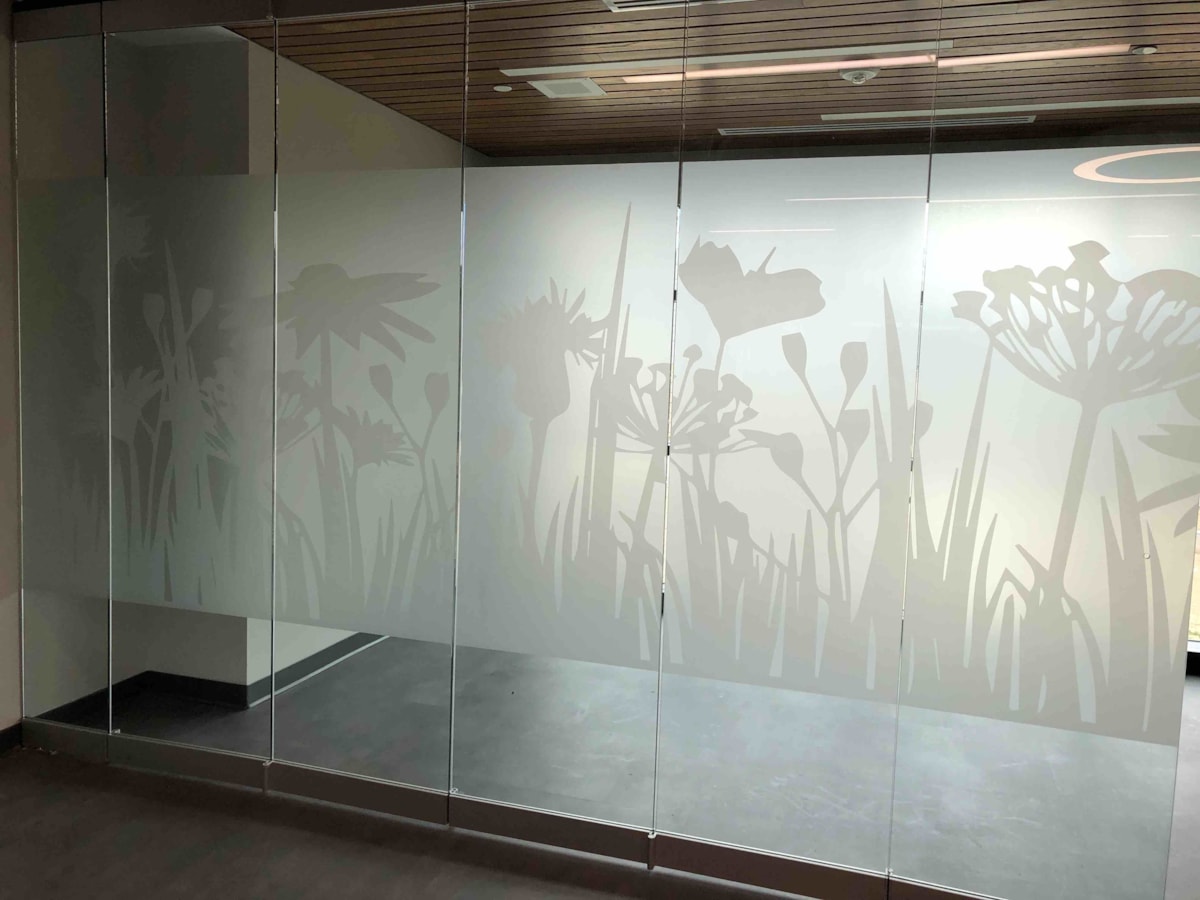 Though exterior-facing windows are a common application for our vinyl window graphics, we have plenty of options that are ideal for indoor use on any glass surface – whether it’s a door, window or wall. If you have conference rooms or offices with interior windows or glass doors, consider frosted glass to create a classy, private space. Download our window graphics guide.