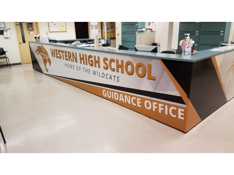 Image360 Hollywood can create custom graphics for desks, tables, kiosks, and podiums in your place of business to allow you to share your message and convey a unified look of your company branding.