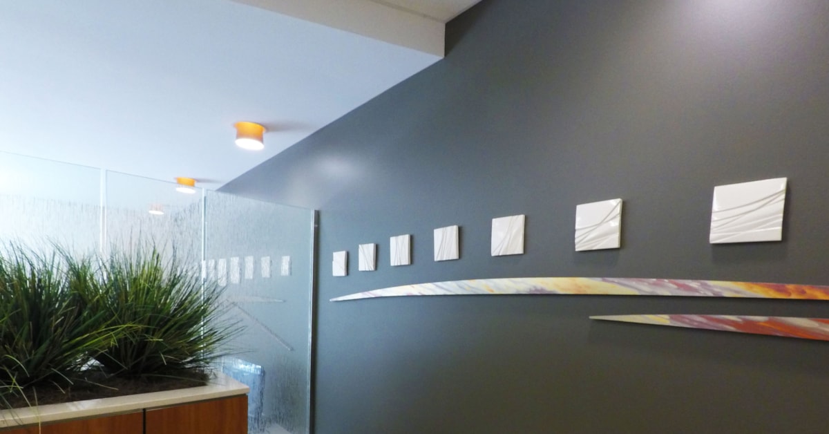 Paintings, sculpture, murals and more are key to creating environments where visitors and employees alike enjoy spending time. Art and graphical messaging unifies dissimilar spaces to create a more cohesive whole. Perhaps most important, it identifies who you are. Well chosen, art underscores the core values and ideals to which your company or organization adheres.