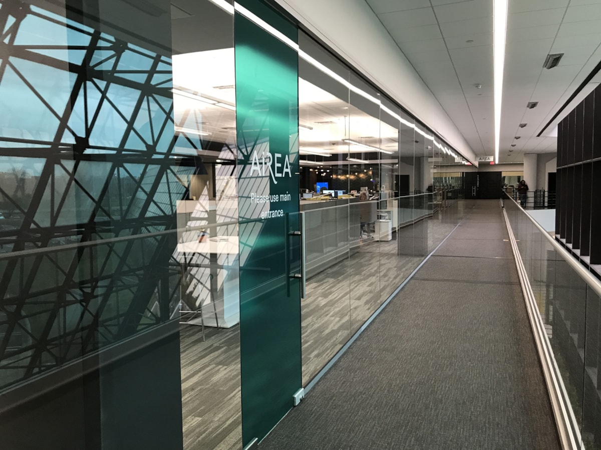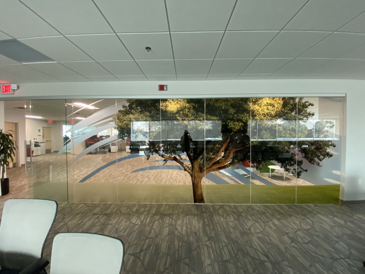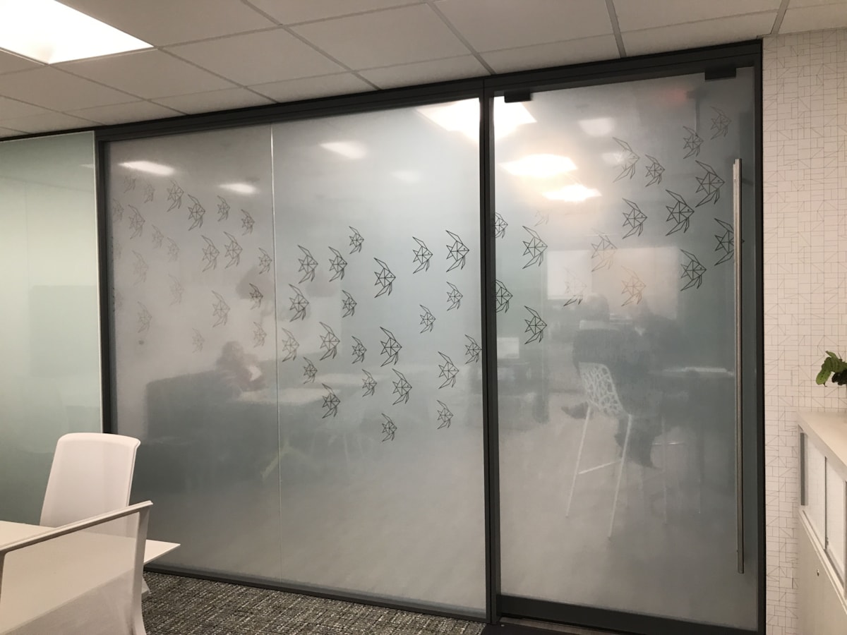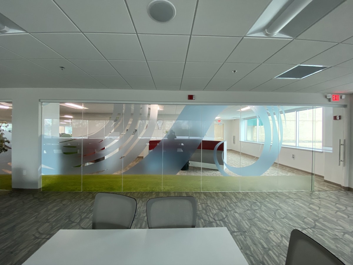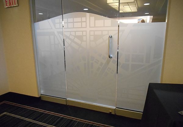 Though exterior-facing windows are a common application for our vinyl window graphics, we have plenty of options that are ideal for indoor use on any glass surface – whether it’s a door, window or wall. If you have conference rooms or offices with interior windows or glass doors, consider frosted glass to create a classy, private space. Download our window graphics guide.