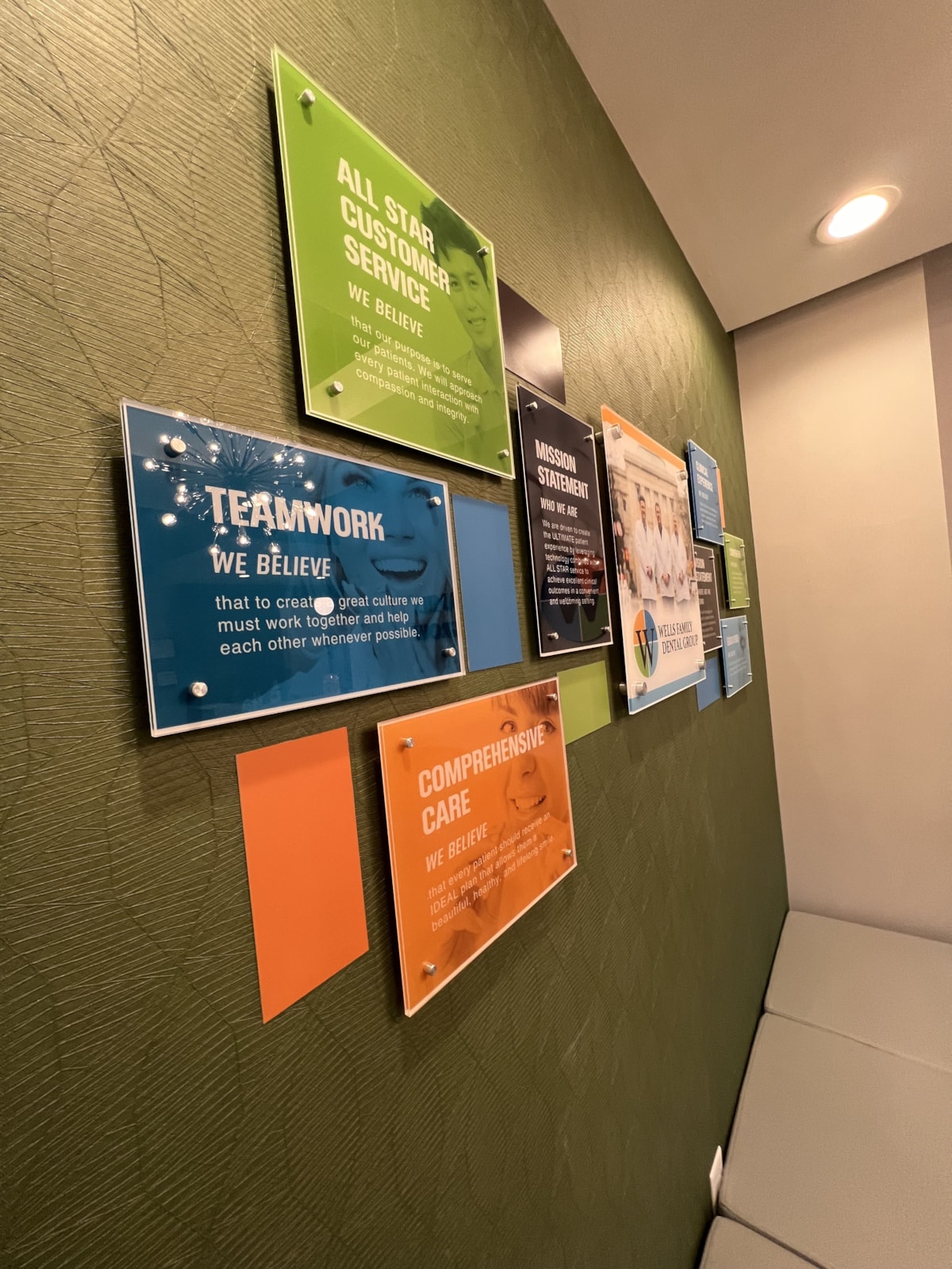 You can also easily incorporate lighting, with backlighting and other illumination options. Remember, a well-lit sign better captures attention of passers-by throughout the evening. Even indoors, added lighting can impart a professional, sophisticated look to your lobby or reception area.