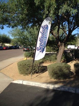 Whether hung on a pole, mounted on the side of a building, or vertically displayed on built-in poles you stake into the ground, feather flags are an attractive—and affordable—way to promote a special event in Scottsdale.